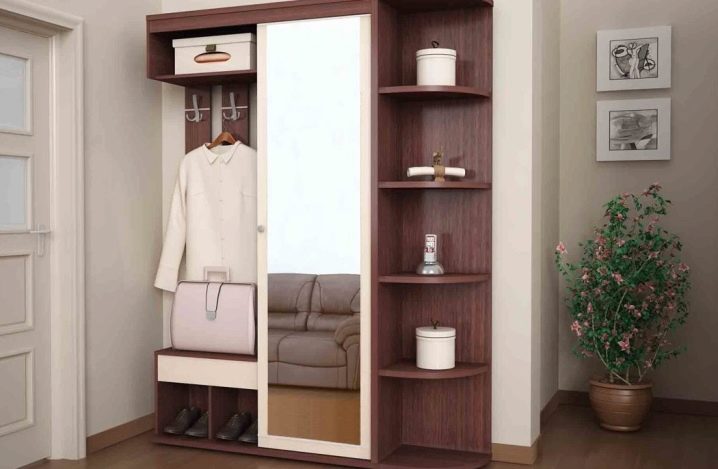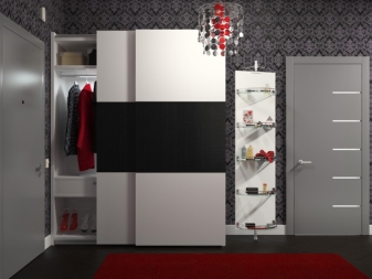 نماذج الرفوف الضيقة مع الأرفف تختلف في الأسلوب والراحة. إذا كانت الملابس مخزنة بشكل أساسي في خزانة بأبواب عمياء ، فإن التصميمات ذات الأرفف المفتوحة تستخدم للزينة ، يمكنك وضع أشياء صغيرة ضرورية عليها: مفاتيح ، أمشاط ، مظلات وأكثر..
