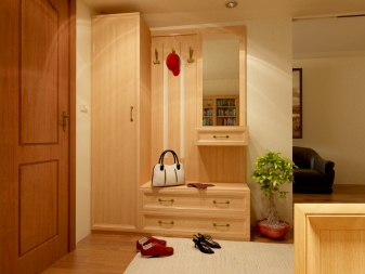 - معياري. يتم تضمين خزانة الملابس الضيقة في مجموعات الردهة المعيارية. يتكون الرواق المعياري من عدة عناصر مختلفة ، يمكنك ترتيبها بنفسك. تتكون المجموعة من خزانة ضيقة وخزانة أحذية وعلاقة ومرآة. يمكن اختيار سماعة رأس جاهزة ، مع مراعاة الخصائص الفردية للممر. يوجد نوع مختلف من الردهة المعيارية بخزانة ملابس ضيقة ، حيث توجد مقصورات للمظلات والقبعات.