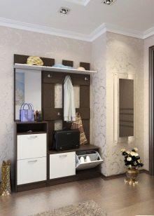 - مع رف أحذية. يصل عرض النموذج الضيق لخزانة الأحذية إلى 20 سم ، نظرًا لتنوع الألوان والقوام ، يمكن أن يتناسب بشكل متناغم مع أي تصميم. غالبًا ما يستخدم رف الأحذية ليس فقط لتخزين الأحذية ، ولكن أيضًا كديكور ، ووضع عناصر زخرفية مثيرة للاهتمام عليه.