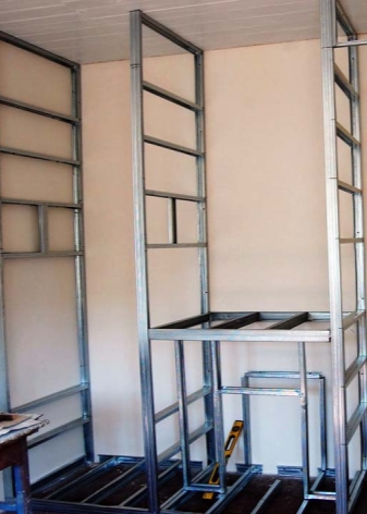 أساس هياكل اللوح الجصي ، كقاعدة عامة ، مبني من عوارض معدنية. ولكن إذا كان الحمل المخطط على الرفوف في الخزانة ضئيلًا ، فيمكن أيضًا استخدام الخشب. ومع ذلك ، فإنه سيتطلب معالجة مطهرة أولية واختيار دقيق ومتوازن للمواد..