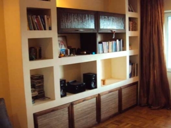 نظرًا لتعدد استخدامات مواد البناء ، يمكن وضع هيكل من اللوح الجصي في شقة أو منزل في كل مكان تقريبًا ، من الردهة إلى الشرفة. يمكنك صنع خزانة ملابس خطية زاويّة بأبواب منزلقة من ألواح الجبس. كل هذا يتوقف على المهام التي سيحلها هذا الأثاث. أبسط خزانة من حيث البناء مع أرفف مفتوحة. ومع ذلك ، فهي ليست عملية مثل نفس الأثاث مع الأبواب ، والتي ستحتاج إلى طلبها بشكل منفصل (بعد كل شيء ، لا ينصح باستخدام دريوال في هذه الحالة).