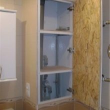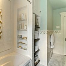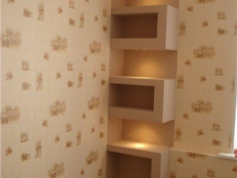 يجب تخزين الكثير من الأشياء الصغيرة في الحمام والمرحاض. لهذه الأغراض ، يمكنك أيضًا بناء خزانات مصنوعة من ألواح الجبس المقاومة لمستويات الرطوبة العالية. يُنصح أيضًا بحماية سطح هذه الهياكل بطبقة خارجية بالبلاط والفسيفساء وألواح الجدران..