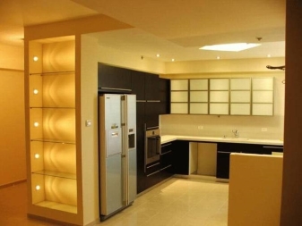 يمكن أن يكون الحل الاقتصادي للغاية مجموعة من أثاث المطبخ مصنوع من اللوح الجصي المقاوم للرطوبة. علاوة على ذلك ، يمكن تجميع الخزانات العلوية والسفلية. صحيح أن خزائن المطبخ المصنوعة من اللوح الجصي ، على الرغم من مقاومة الرطوبة للمادة (دريوال أخضر فقط) ، تحتاج إلى حماية إضافية من الماء. لذلك ، في مرحلة التشطيب ، يتم تغطية هذه الخزانات بالبلاط أو الفسيفساء ، ويتم وضع سطح طاولة خاص.