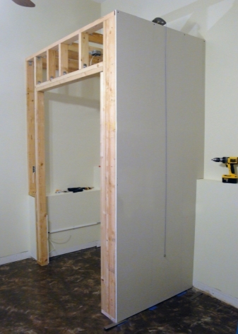 في مرحلة بناء القاعدة ، يتم أيضًا قطع فتحات لوضع المصابيح والمفصلات والأدلة لأبواب خزانة الملابس..