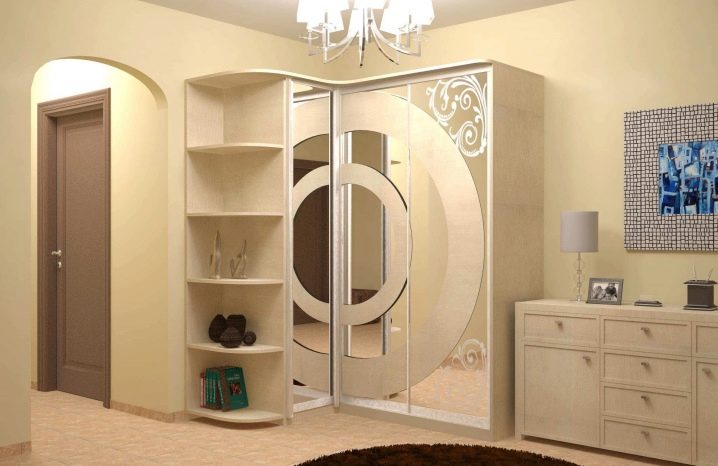 نماذج الزاوية توفر مساحة جيدة. يمكن وضعها في أي ركن مجاني في الردهة وغرفة النوم وحتى الحمام. تسمح لك قطعة الأثاث هذه بتقسيم المنطقة بشكل عقلاني وإنشاء مساحة تخزين إضافية. يمكن أن تستوعب أرفف ذات ارتفاعات مختلفة ، وأعمدة عرضية ، وقضبان دوارة. سيساعدك وجود سطح عاكس على الباب على اختيار الزي المناسب..