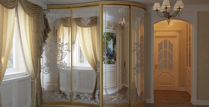 نموذج نصف القطر مناسبة لخبراء التصميمات الداخلية غير القياسية. أبواب هذا النموذج لها شكل دائري ، مما يؤكد ليونة ونعومة الهيكل بأكمله. تتمتع خزانة الملابس هذه بسعة جيدة ، وستناسب تمامًا الممر وفي غرفة المعيشة..