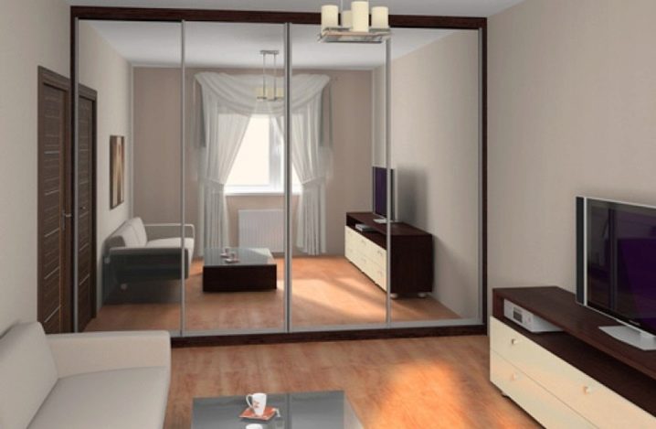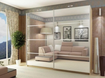 على سبيل المثال ، إذا تم تركيب خزانة ملابس كبيرة في شقة ، فإن أبعادها ستخفي مساحة ثمينة. ولكن نظرًا للأبواب ذات المرايا ، ستزداد أبعاد مساحة الغرفة بصريًا.