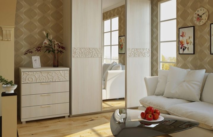 غالبًا ما يحدد الموقع المستقبلي للخزانة والغرض الوظيفي الحجم والأسلوب المطلوبين. ستكون خزانة الملابس مع إدراج المرآة حلاً متعدد الاستخدامات لأي غرفة. يشمل تصميمه أبواب منزلقة مع مرايا..