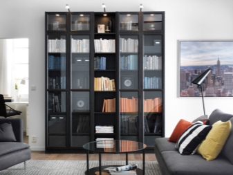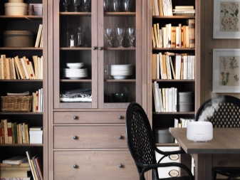 هناك أيضًا خزانات عرض خاصة في المجموعة ، والتي تم إنشاؤها ببساطة لعرض أدواتك الجميلة. على سبيل المثال ، بالنسبة لخدمة قديمة رائعة ، مجموعة من الطوابع ، للكتب النادرة ، وكذلك كؤوس وجوائز لأنواع مختلفة من الإنجازات. تعتبر الرفوف الطويلة مثالية لتقسيم المساحة بصريًا إلى عدة أجزاء. هذا خيار رائع لتنظيم الأشياء وتقسيم شقة استوديو. حقائب أقلام الرصاص على عجلات ، وخزائن مفصلية وقابلة للطي تحظى بشعبية كبيرة أيضًا..