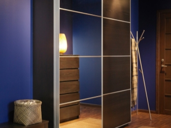 - خزانة ملابس بأبواب عاكسة. هذا النموذج كلاسيكي لاستكمال أي مدخل. الواجهة العاكسة توسع المساحة بصريًا. لا تتطلب الأبواب الموجودة على سكك حديدية مساحة إضافية لفتحها على عكس الأبواب المتأرجحة. وستتناسب جميع الأشياء الضرورية والملابس المخلصة داخل الهيكل. يمكن أن يكون الحشو الداخلي موجودًا ، كل هذا يتوقف على تفضيلاتك وأسلوب حياتك.