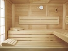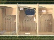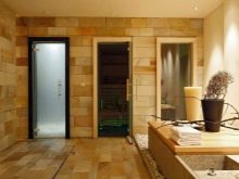 في نفس الوقت يمكن الجمع بين غرفة الغسيل وغرفة البخار ، وتنقسم غرفة الملابس إلى غرفة استراحة وغرفة ملابس منفصلة.