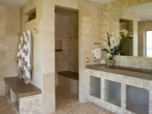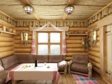 باختيار تصميم عتيق للزينة ، يمكنك إحضار الأواني الخشبية (مغارف ، أحواض ، أحواض) إلى داخل الحمام الخاص بك ، وشراء أثاث الحمام بنقوش أو عناصر تزوير ، وتزيين الجدران والسقف بعناقيد من المكانس والأعشاب العطرية. يمكن أن تكون إكسسوارات المنسوجات النسيج والتطريز.