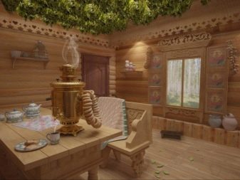 على الرغم من الاتجاهات العديدة في تصميم الحمامات الحديثة ، إلا أن أكثرها شهرة هو الديكور التقليدي على الطراز الروسي مع مقاعد عادية في غرفة البخار والأدوات التقليدية لأواني الحمام..