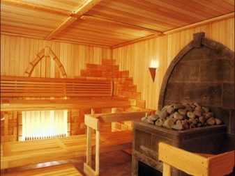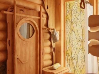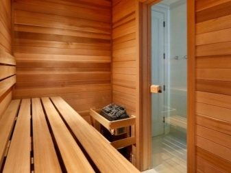 بالإضافة إلى ذلك ، يمكن عمل قسم أو شاشة إضافية لغرفة تغيير الملابس في غرفة الاستجمام. في غرفة البخار ، يمكنك تثبيت مقعد واحد أو أكثر ، اعتمادًا على عدد الأشخاص الذين سيزورون الحمام في نفس الوقت.