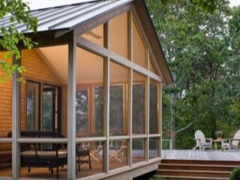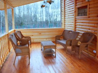 يمكن أن تحل الشرفة الأرضية أو التراس (خاصة في الصيف) محل منطقة الجلوس بسهولة. إذا كان من الممكن إغلاق نوافذ الشرفة ، فيمكنك استخدام مساحة الغرفة حتى في موسم البرد ، وسوف تتخلص الناموسيات من الحشرات المزعجة.. ستساعد المشاريع مع المباني الصيفية المالك المستقبلي على التوفير في الديكور الداخلي ، فضلاً عن التدفئة والعزل المائي.