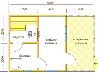 من الممكن تخطيط المساحة على الموقع بشكل صحيح والحصول على ساونا كبيرة مريحة بحجم 6 × 4 أمتار إذا استبدلت الشرفة بشرفة صغيرة. سيوفر هذا مخرجًا مريحًا للهواء النقي ، بالإضافة إلى إلقاء نظرة نهائية على الهيكل..