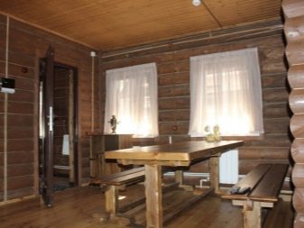 هناك مشاريع يوجد فيها فرصة للذهاب مباشرة إلى غرفة البخار من غرفة الاستراحة ، بينما يؤدي الباب المنفصل إلى غرفة الغسيل. ولكن فقط في الحمام التقليدي الروسي البحت ، تكون غرفة البخار هي قلب الهيكل بأكمله ، ولا يمكنك الدخول إليها إلا من الحوض..