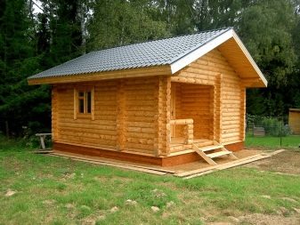 حجم الحمام الأمثل هو 4 × 6 أمتار. سوف ينظر مثل هذا المبنى بشكل عضوي إلى كوخ صيفي صغير ، بينما سيسمح لك بتنظيم إجازة بشكل مريح لشركة صغيرة من 4-6 أشخاص.
