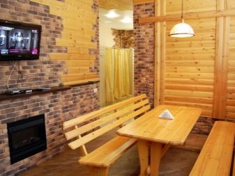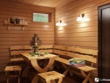 المباني التي يمكنك العثور عليها ، ولكن يمكنك الاستغناء عنها – غرفة ترفيهية أو شرفة أرضية صغيرة تحل محلها. تعتبر المساحات المنفصلة لهذه الأغراض مريحة ، حيث يمكنك الالتقاء بدائرة عائلية صغيرة أو مع الضيوف بعد إجراءات الاستحمام والدردشة مع فنجان من الشاي..