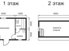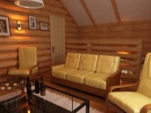لكن تظهر مساحة أكبر في الطابق الأرضي. يمكنك إنشاء غرفة بخار أكثر اتساعًا ، والعثور على مكان لغرفة المرافق ، وتركيب كابينة الاستحمام في غرفة الغسيل. ثم سيتم تخصيص الغرفة الموجودة أسفل السقف بالكامل للاسترخاء. يمكنك وضع طاولة لتناول الشاي فيها ، وأريكة مريحة ، وحتى تجهيز زاوية للطهي..