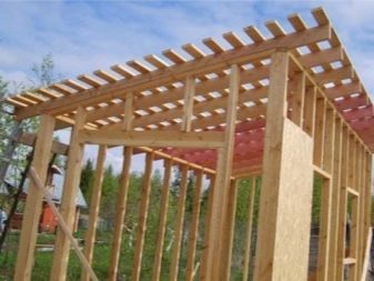 بمجرد إنشاء الأساس للحظيرة ، يمكنك المتابعة إلى بناء جزء الإطار. في المقام الأول ، يتم تركيب أرفف محامل عمودية مصنوعة من الخشب. بعد ذلك ، يتم خياطة الأرضية وتثبيت العوارض الخشبية (ستكون هناك حاجة لإنشاء سقف سقيفة في المستقبل).