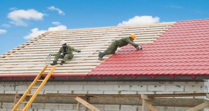 من الأسهل ترتيب السقف المائل باستخدام اللوح المموج. ستكون هذه المادة المعدنية قادرة على تحمل أي كارثة طبيعية تقريبًا. يمكن لأي شخص وضع الأساس.