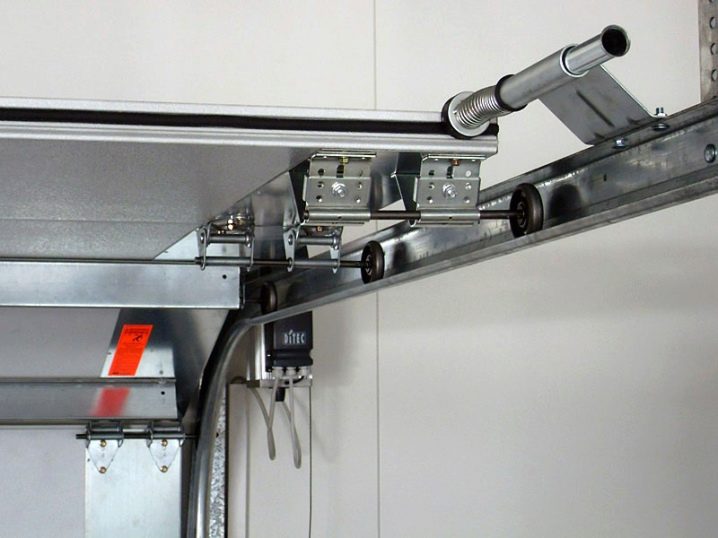 تحتوي البكرات ، التي تتحرك بسببها الألواح العازلة على طول الأدلة ، على أقواس مصنوعة من الألومنيوم والفولاذ المقاوم للصدأ ، والتي يمكن من خلالها ضبط دعامة الألواح العازلة على فتحة المرآب. يتم ضمان الفتح السهل من خلال نوابض التواء الشد الموجودة فوق فتحة الباب. لديهم أيضًا قوابض أمان تمنع سقوط ورقة الباب في حالة تعطل الآلية بأكملها..