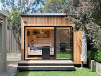 إذا تم تشغيل مجموعة الأدوات المساعدة كمنشأة تخزين مؤقتة, ثم بعد ذلك يمكن تحويله بسهولة إلى منزل فندقي صغير. في مثل هذا المبنى ، سيكون من الممكن إنشاء شرفة أرضية أو تراس مفتوح من خلال إعداد طاولة مع كراسي لقضاء وقت ممتع في الصيف مع الأقارب أو الأصدقاء..