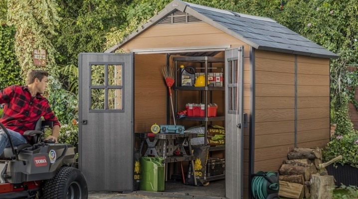 - ميني هووزبلوك. اسم هذه المباني يتحدث عن نفسه. إنها صغيرة الحجم ، لذلك ، بالطبع ، لن تعمل لتجهيز مرآب أو شيء مشابه في الجزء الداخلي منها. ومع ذلك ، يمكنك هنا بسهولة تخزين مجموعة متنوعة من أواني الحديقة أو أدوات العناية بالحديقة. بالنسبة للعديد من المستخدمين ، تعد وظيفة كتلة الأداة هذه كافية تمامًا..