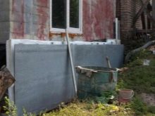 أولاً ، يتم رسم الرسم بالأبعاد. في بعض الأحيان يتم تضمين دش ومرحاض في تصميم المبنى. ثم يتم زيادة الأبعاد. الأساس العمودي الرخيص مناسب لبناء كتلة المرافق.. يتم على النحو التالي.