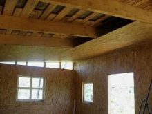 - يجب أن يكون السقف مغمدًا بـ OSB أو الخشب الرقائقي. لا يجب أن تحتوي وحدة المرافق على إطارات نوافذ وأبواب. يتم التثبيت على الإطار. تم كسر الأخاديد الزجاجية.