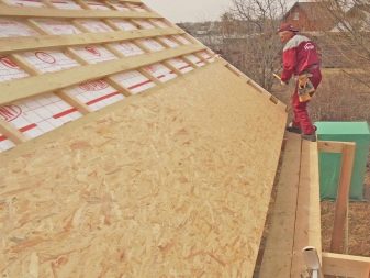 OSB عبارة عن لوح مصنوع من نشارة أسبن ، مرتبط براتنج مقاوم للماء مع إضافة حمض البوريك. المادة متينة وليست خطرة على صحة الإنسان. يتم تغليف ألواح OSB بعد الانتهاء من المبنى الرئيسي. ثم يتم تركيب كل شيء آخر. ألواح OSB مادة متينة: فهي لا تتعفن. بمجرد إنشاء الإطار ، يتم تثبيت الدعامات على الفور بحيث تسقط الألواح عليها..