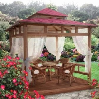 هناك أنواع لا حصر لها من شرفات المراقبة. يعتمد الإصدار النهائي لمثل هذا الهيكل فقط على ذوق وتفضيلات وخيال مالك الموقع. دعونا نلقي نظرة سريعة على الأنواع الرئيسية لهذه الزخارف الصغيرة للمنطقة..