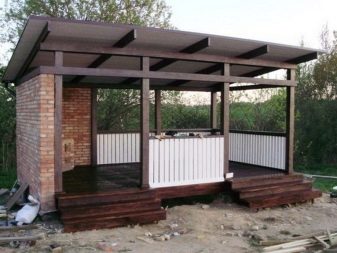 - لبنة أو حجر. هذه المواد هي الأنسب لصنع شرفات المراقبة مع الشواء أو الشواء. هذه مادة لهيكل أكبر حجمًا ، حيث تسمح لك بتثبيت النوافذ وإجراء الاتصالات الهندسية وعزل المبنى. بعد استكمال الشجرة بهذه المرافق ، يمكن استخدامها في فصل الشتاء. عيب هذه المواد هو التكلفة الباهظة نسبيًا والحاجة إلى أساس متين..