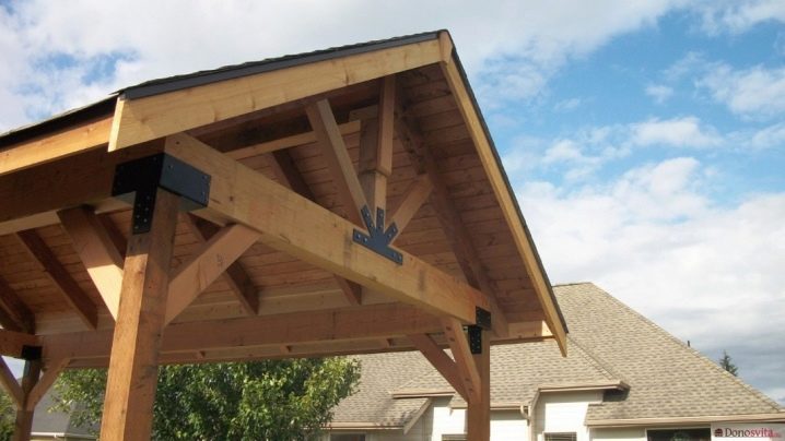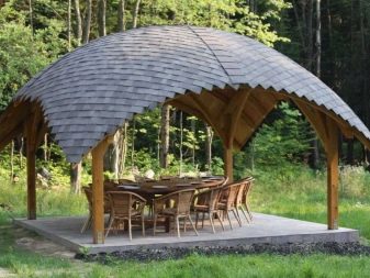 - خيار آخر لمزيج جيد مع شرفة المراقبة رباعي الزوايا هو سقف نصف دائري. في هذه الحالة ، يجب أن تكون العوارض الخشبية مصنوعة من المعدن..