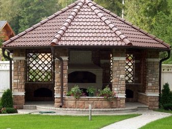 الميزة أيضًا هي أن البلاط مقاوم للثلج والشمس والرطوبة. لا يفقد اللون والشكل. تسمح القدرة على قص الألواح باستخدامها في أشكال الأسقف المعقدة. عيب هذه المادة هو التكلفة العالية للتركيب ، حيث يستخدمها القليل من الناس في هيكل السقف. يمكن استخدام خيارات أخرى لإنشاء شرفة المراقبة ، على سبيل المثال ، أنابيب البولي بروبلين والقصب كتصميم للسقف ومواد أخرى في متناول اليد.