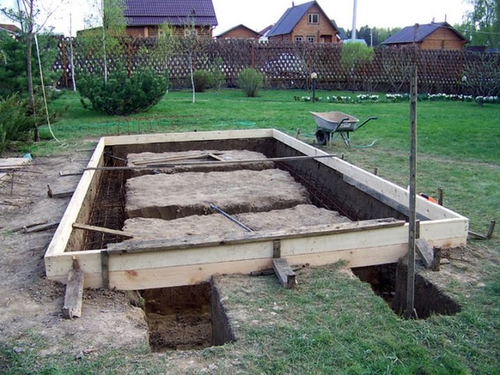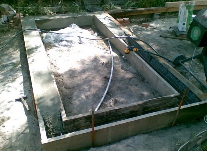 ويلي ذلك تصنيع القوالب وتركيب خندقها. القوالب مصنوعة من الألواح الخشبية. يجب أن يتجاوز ارتفاعه قليلاً ارتفاع الأساس المخطط. وتجدر الإشارة هنا إلى أن الأساس يمكن أن يصل إلى مستوى الأرض ، أعلى أو أسفل هذه العلامة. يمكن توفير ذلك من خلال تصميم الشجرة. إذا تم تنفيذ الأساس تحت مستوى الأرض ، فيجب تعميق الخندق بنفس المسافة.