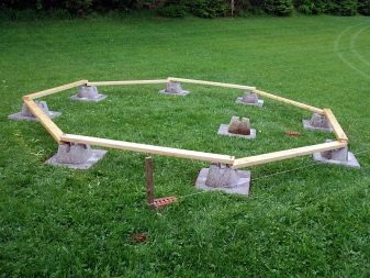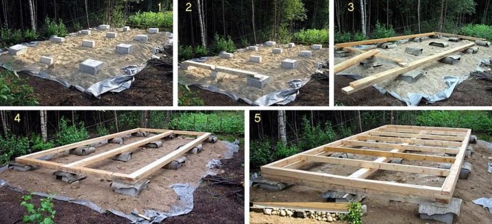 من أجل إنشاء أساس من أكوام المسمار ، كما في الحالة الأولى ، يتم رسم محيطها على الموقع. ثم يتم تمييز الأماكن التي سيتم غمر الأكوام فيها بالأوتاد. من أجل منع نمو النباتات تحت شرفة المراقبة ، تتم إزالة طبقة خصبة من الأرض. بعد ذلك ، تُستخدم الرافعات لدفع الأكوام إلى الأرض حتى تثبت بإحكام في الأرض. بعد تثبيت الأكوام ، يتم وضع الرمل على الموقع ، مبلل بالماء. يسكب الحجر المكسر على الرمال. يجب أن يكون سمك طبقات الرمل والحجر المكسر حوالي 7 سم ، وستكون هذه الوسادة بمثابة تصريف وعائق أمام إنبات الأعشاب الضارة. وظائف الصرف الصحي لحماية الأعمدة من الرطوبة.