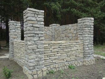 بعد الطبقة الأولى من الحجارة ، يتم تثبيت القوالب التالية وتكرار العملية.. لذلك ، طبقة تلو الأخرى ، يرتفع العمود بأكمله. بعد الانتهاء من وضع الحجر ، يجف المحلول خلال 24 ساعة. بعد هذا الوقت ، تتم إزالة القوالب ، ويتم سد الفجوات بين الأحجار بمدافع الهاون الأسمنتية بنسبة – جزء واحد من الأسمنت و 3 أجزاء من الرمل. تم وضع الجدار بطريقة مماثلة. تجدر الإشارة إلى أنه عند تشكيل الجدار ، يجب وضع شبكة تقوية كل صفين أو ثلاثة صفوف من الحجارة. يتم ذلك بحيث ترتبط الأحجار ببعضها البعض..