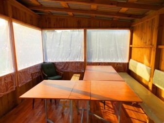 على الرغم من حقيقة أنها مقاومة للتغيرات في درجات الحرارة ، يتم تفكيك شرفة المراقبة لفصل الشتاء. يتم ذلك حتى لا يفقد البولي كربونات صفاته الجمالية..