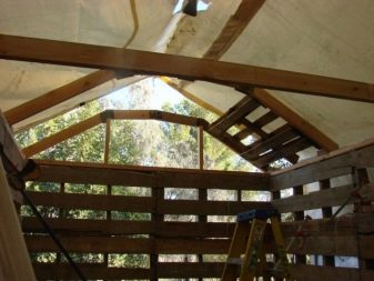 يتم تشكيله بشكل أساسي من السكة العلوية والتداخل. يُسمح بشعاع بقسم 100 × 100 مم على هذا التداخل. من الضروري التأكد من أنها لا تنحرف عن محيط الجدران. في أي حال ، يجب أن يكون السطح مزودًا بطبقة مقاومة للماء. يمتد فيلم خاص غير منفذ للماء على العوارض الخشبية ؛ في بعض الأحيان يتم استخدام مواد التسقيف أيضًا ، لكن هذا حل قديم.