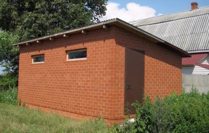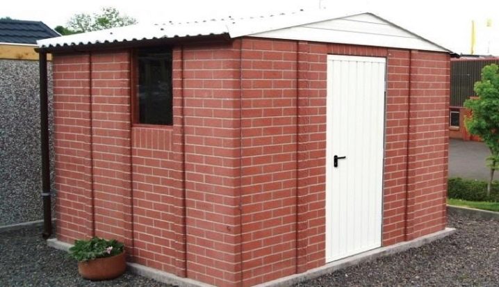 - خيار آخر مثير للاهتمام هو سقيفة من الطوب مع سقف الجملون. ميزة خاصة هي النافذة المدرجة. لكن هنا الباب لم يعد حديدياً ، بل مصنوع من الخشب المغلف بالبلاستيك.