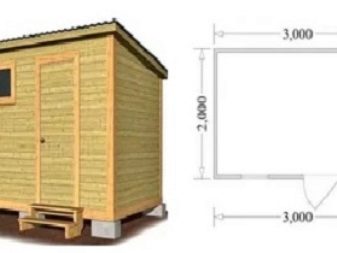 في بعض الحالات ، حتى أنهم يبنون سقيفة صغيرة بحجم 3 في 2 م. سيكون له أيضًا هيكل بسيط للغاية ، ويبدو مثل هذا المبنى منفعيًا تمامًا. عند اختيار الرسومات ، من المنطقي التركيز فقط على الخيارات ذات الباب المفتوح للخارج.