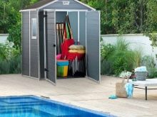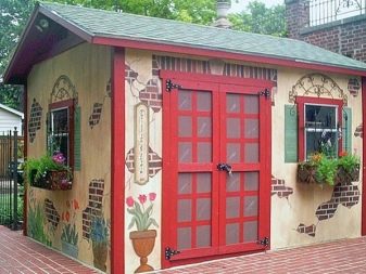 في سقيفة لتخزين الأدوات والممتلكات الأخرى ، يمكنك الخروج بالعديد من خيارات التصميم.. الحاويات البلاستيكية مناسبة للأطوال القصيرة للخراطيم والأشياء الصغيرة الأخرى. الحاويات الفولاذية مفيدة للمسامير والبراغي والبراغي والأسلاك والصواميل وما إلى ذلك. يجب توفير المرفقات المعلقة وخطافات الملابس كلما أمكن ذلك. بالتفكير في التخطيط ، يجب عليك تخصيص مناطق التخزين بوضوح.