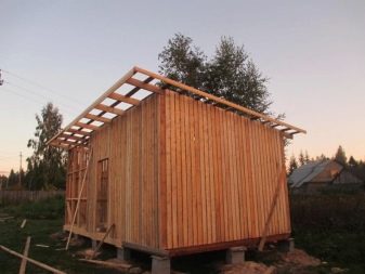 للمؤسسة سوف تحتاج رمل. مواد التسقيف سيسمح لك بعمل العزل المائي بين الدعامات والسجلات. تم وضع الأرضية من لوحات اللسان والأخدود, تظهر نفسها بشكل مثالي. مجموعة متنوعة من المسامير والبراغي ستكون في متناول يدي السحابات. السقيفة نفسها مصنوعة من ألواح ذات حواف – مادة مثالية لتغليف الإطار.