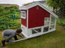 من الأفضل استخدام الإضاءة الاصطناعية المصابيح المتوهجة أو مصادر الفلورسنت. ولكن في نفس الوقت ، يجب أن تكون جميع الأسلاك موجودة في الخارج وأن تكون محمية بشكل كامل. عند إنشاء حظيرة دجاج محمولة بنفسك ، من الضروري مراعاة السمات المناخية للمنطقة التي سيقع فيها الهيكل. التعرض المنتظم للرياح القوية ، يمكن أن يؤدي هطول الأمطار إلى تدمير المبنى بسرعة.