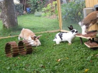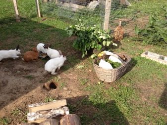 هناك خياران للمشي. الأول هو الرعي ، عندما تبحث الأرانب عن الطعام بمفردها. الحل الثاني هو أن الحيوانات توضع في قفص حيث تتلقى الطعام..