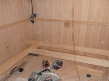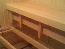 الرف مُثبت بطول غرفة البخار بالكامل. من الأفضل عمل عدة طبقات في وقت واحد ، لأن الصحة تسمح للشخص أن يكون في القمة ، حيث تكون درجة الحرارة القصوى ، ويشعر شخص ما بالراحة في الأسفل.