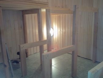 يتكون الإطار من عوارض ، ويتم تثبيت الألواح فوقها. حيث لا تنس أن تطحنهم جيدًا, لتجنب المزيد من الشظايا والأزيز. يتم الطحن أولاً بالمطحنة ثم يدويًا.