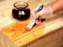إذا كنت ترغب في صنع طاولات وكراسي مصنوعة يدويًا ، فعليك أولاً إفساد الشيء ، أي إظهار أنه يبدو أنه قد نجا عدة أجيال. يمكنك تطبيق “الضرر” بوسائل مرتجلة ، ثم قم بتجهيز الخشب بطبقة من “Pinotex” لإنشاء الطبقة المظلمة الأولى. بعد التجفيف ، قم بتغطية الأثاث بطبقة من المطهر الملون ، ووزعه بشكل غير متساو.
